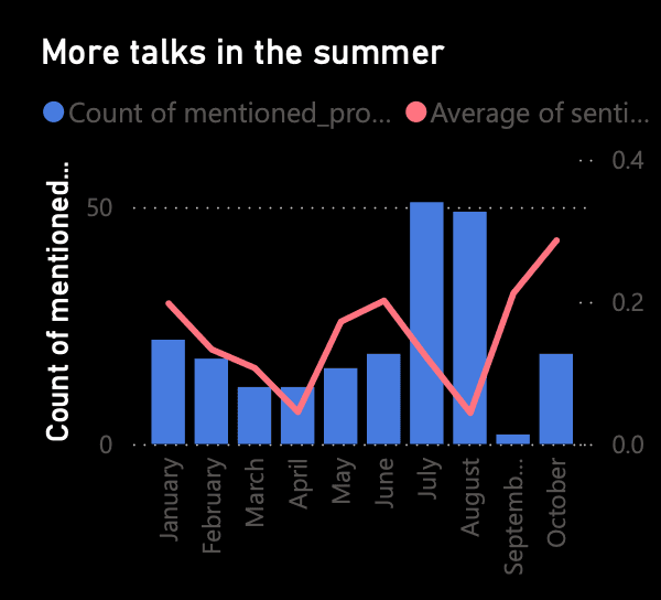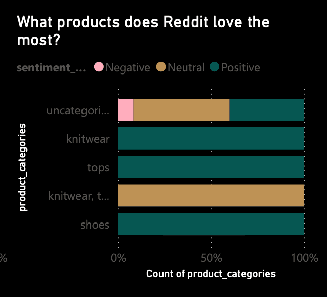 Key findings included a 40% spike in leather jacket sentiment each October, fit-related complaints clustering around specific product lines, and meaningful variation in how summer vs. winter collections are perceived. Delivered as an interactive dashboard translating raw social chatter into actionable product and marketing intelligence.
